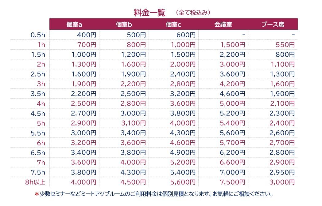 *1h利用以降30分単位の料金設定有 *小・中・高校生/大学生/浪人生:20%引 |